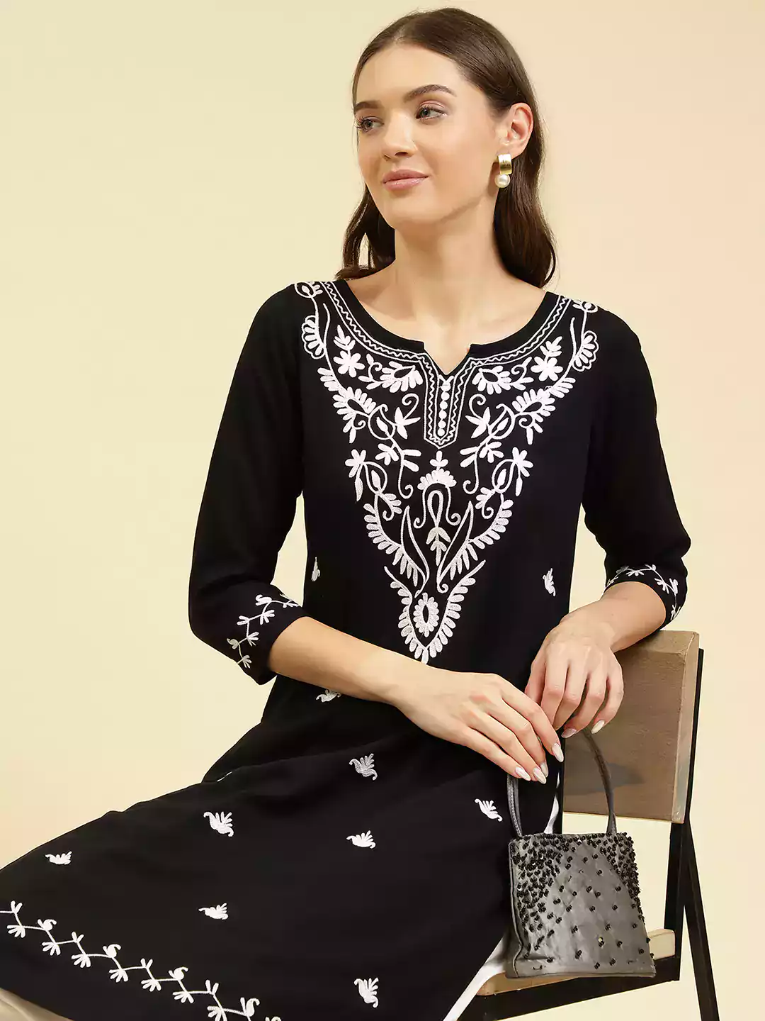 Black Kashmiri Kurti