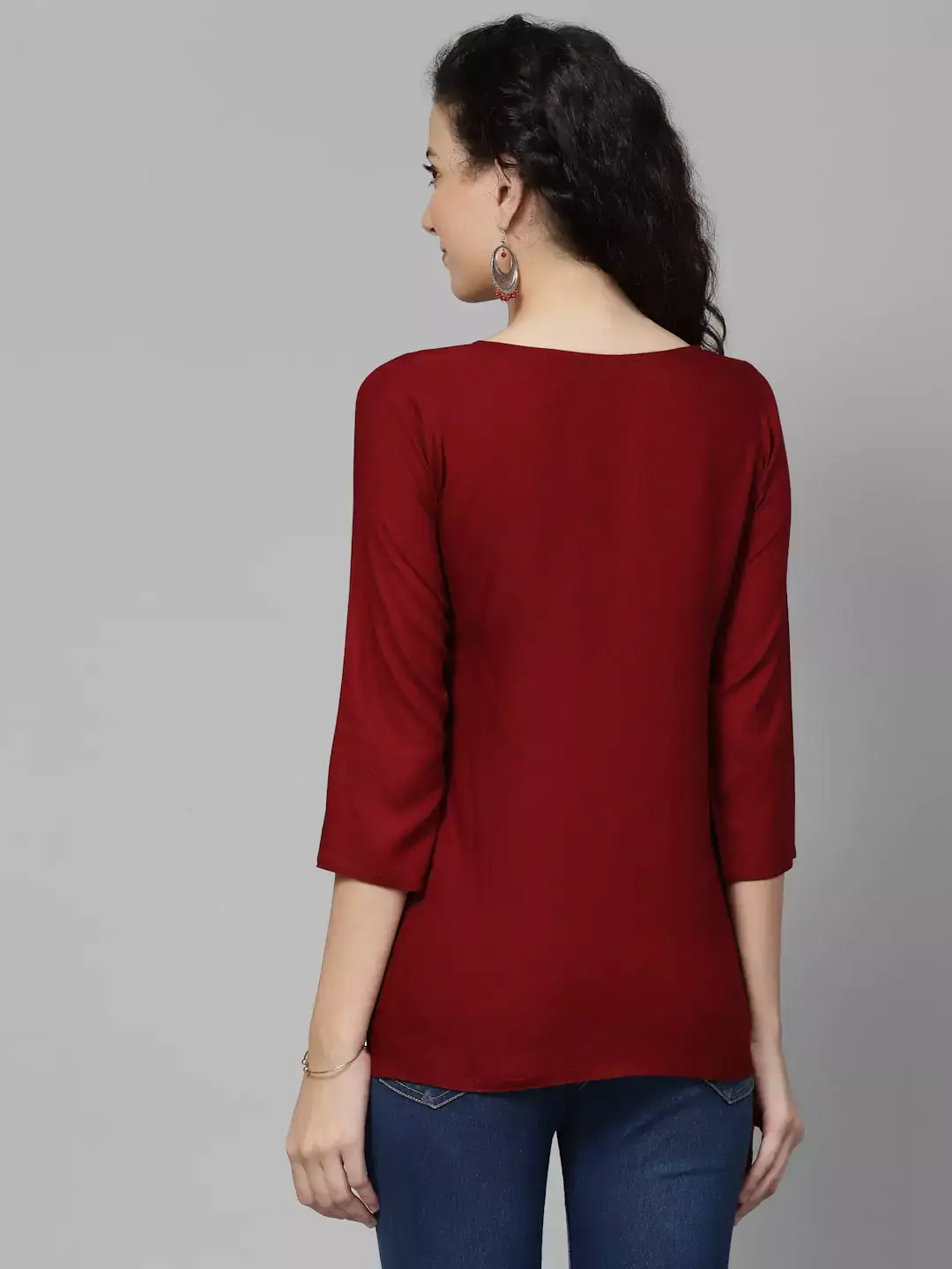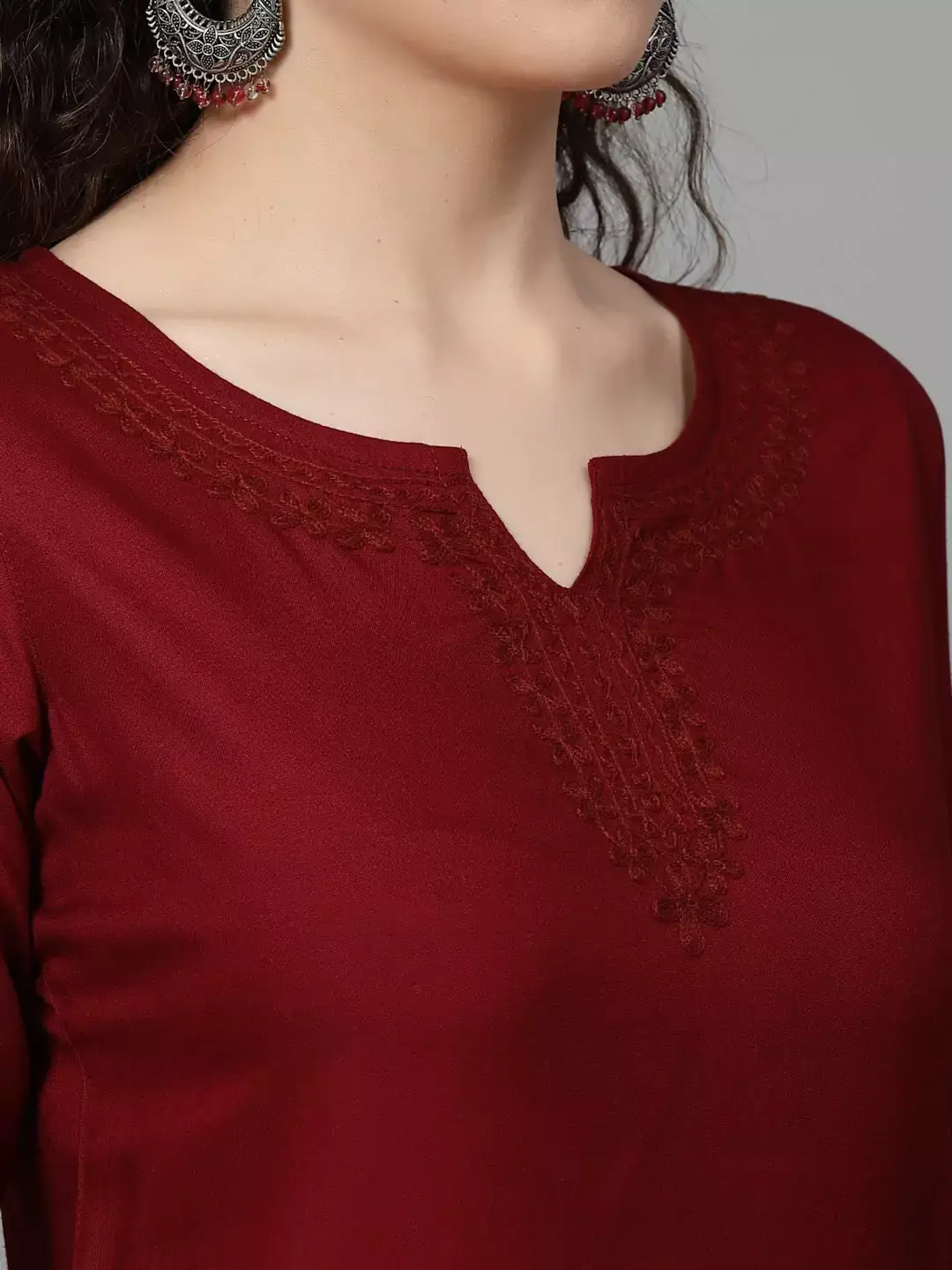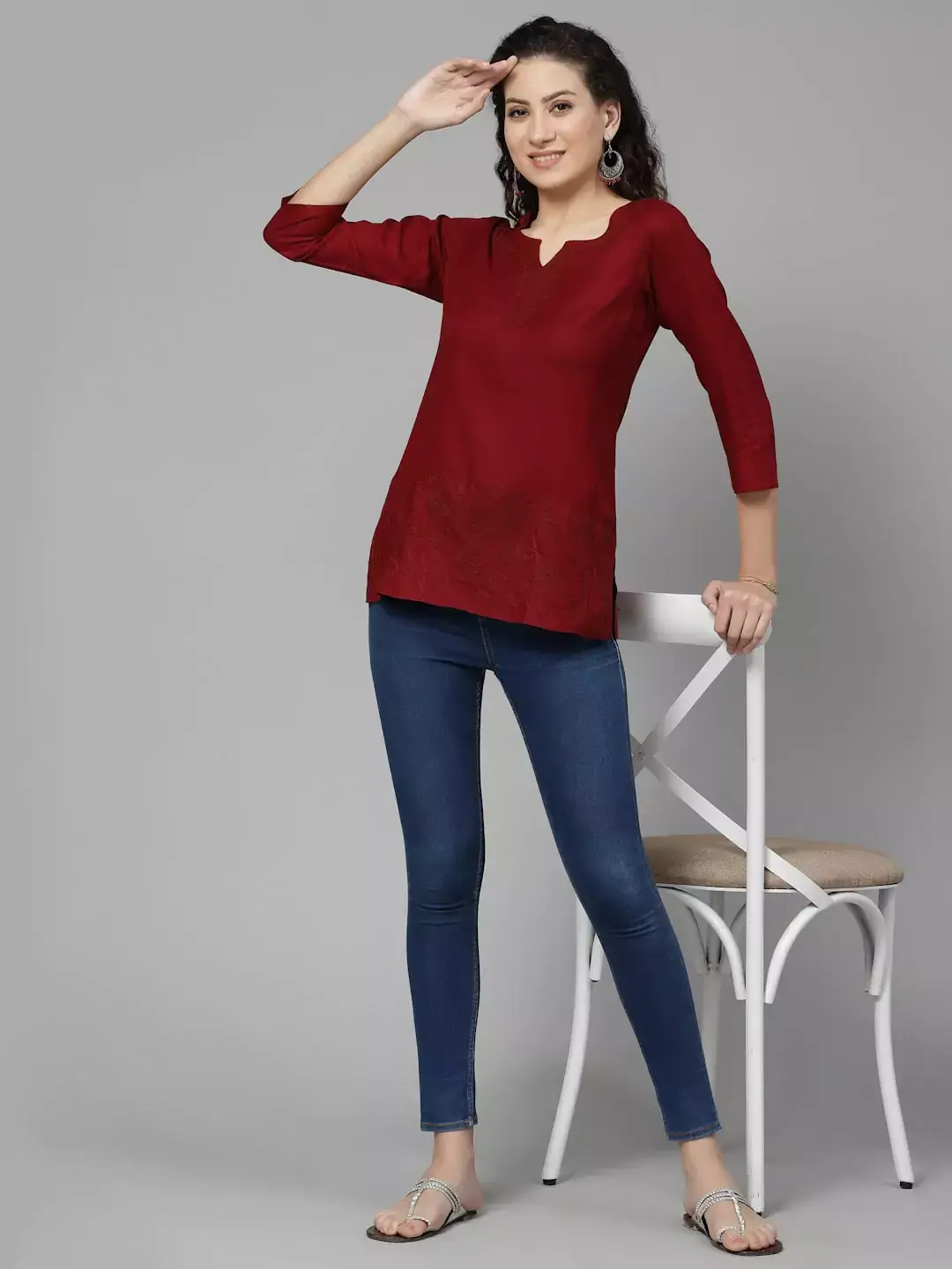 Home Short Kurtis Hiba Maroon Self Embroidered Short Kurti