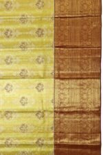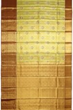 Gold Kanchipuram Silk Saree with Floral Design and Sea Green Border