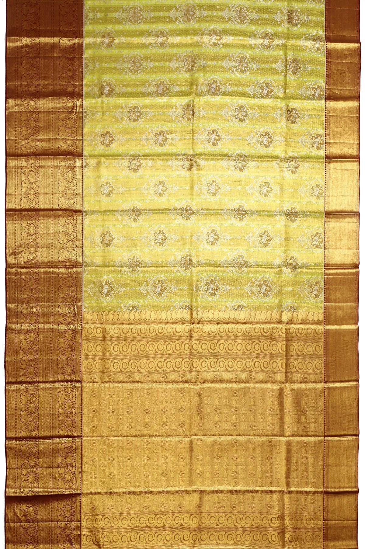 Home Saree Occasions Wedding Sarees Parrot Green Kanchipuram Tissue Silk Saree