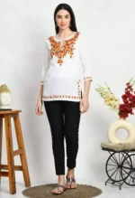 White Kashmiri Embroidered Short Kurti